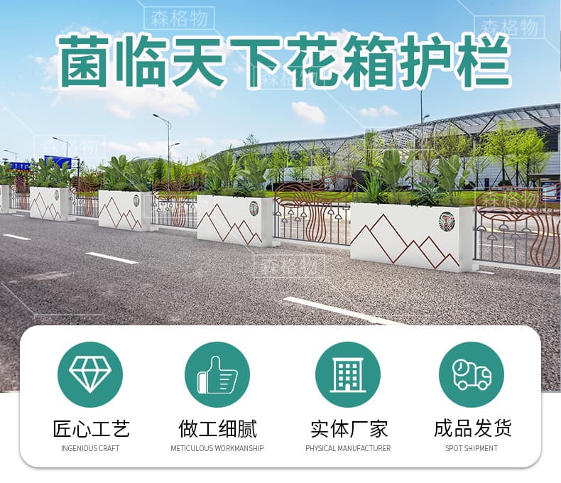 為什么選擇我們的花箱護欄? ? 定制化服務:支持尺寸、顏色、材質定制,滿足不同城市景觀需求 ? 高品質保障:嚴格選材,精湛工藝,確保產品經久耐用 ? 專業團隊:提供從設計、生產到安裝的一站式服務 ? 環保節能:符合現代城市綠色發展的理念