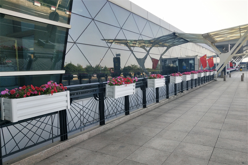 一般橋兩側(cè)寬窄,花箱尺寸小,花箱樣式簡單。橋內(nèi)隔離帶寬度較大,花箱規(guī)格偏大,花箱款式豐富。關(guān)于橋上花箱的款式和布置,我們來說說橋上花箱的材質(zhì)。顯然,懸掛式花箱不接觸地面,因此承重能力很大。所以花箱的配件掛鉤等也不能忽視,好的設(shè)計 是安全的的保證,我們作為有多年的設(shè)計團隊,尤其對安全方面尤為重視。