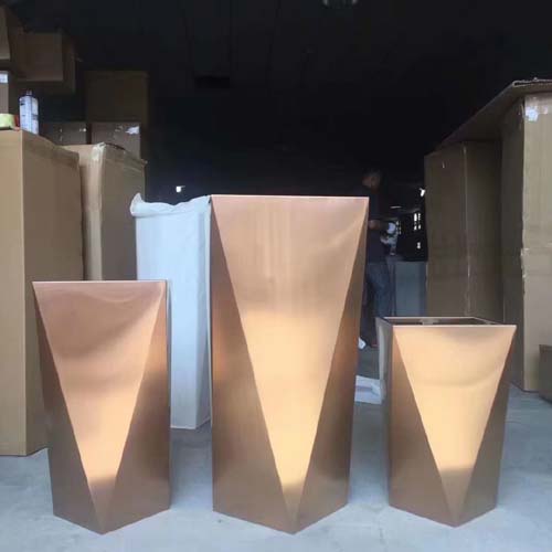 不銹鋼花箱可塑性極強,根據客戶的要求定制各種異形,方形,圓形,球形等不規則形狀,其色彩多變。